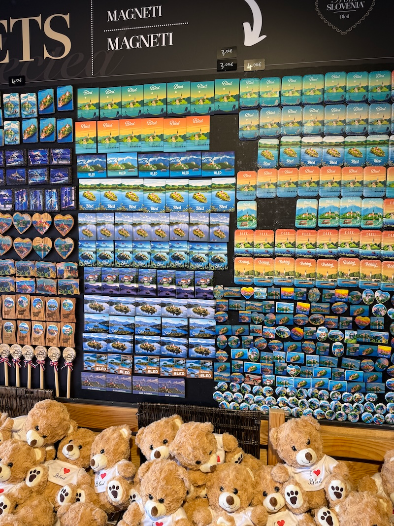 وجدت متجر تذكارات أسمه FromSlovenia Bled يقدم منتجات حصرية عن بحيرة بليد وأحببت أن أخذ مغناطيساً تذكارياً للمكان، وعرفت بعدها أنه فرع للمتجر الرائع الذي زرته في العاصمة. حبيت أنه متجر يبيع أشياء تخص البلد ويدعم الكثير من المشاريع المحلية عبر بيع منتجاتهم.