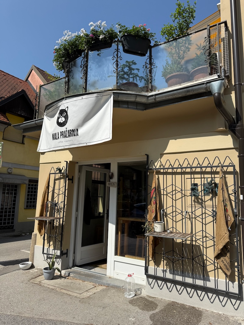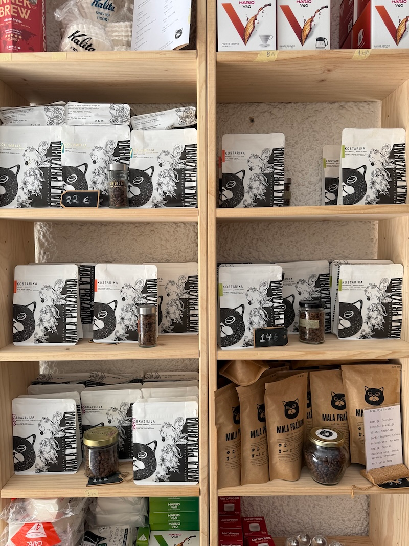 مقهى Mala Pražarna – صغير وحميمي يقدمون القهوة وأيضاً عندهم محمصتهم الخاصة يبيعون منتجاتهم بالإضافة إلى أدوات مختلفة من القهوة.