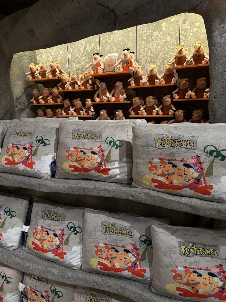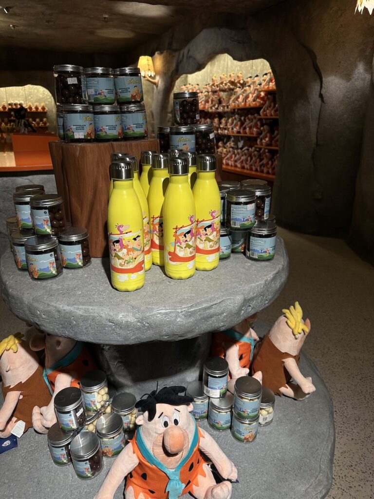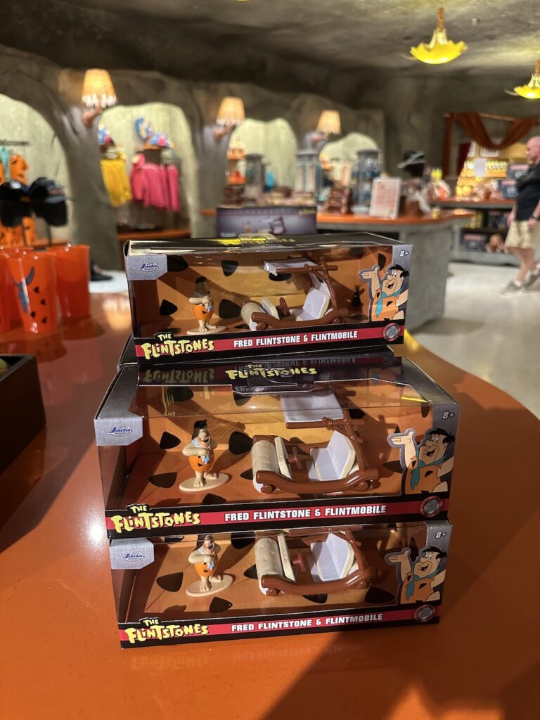 لديهم لعبة قارب ممتعة وبعده متجر لمنتجات حصرية لشخصيات فلينستون.
